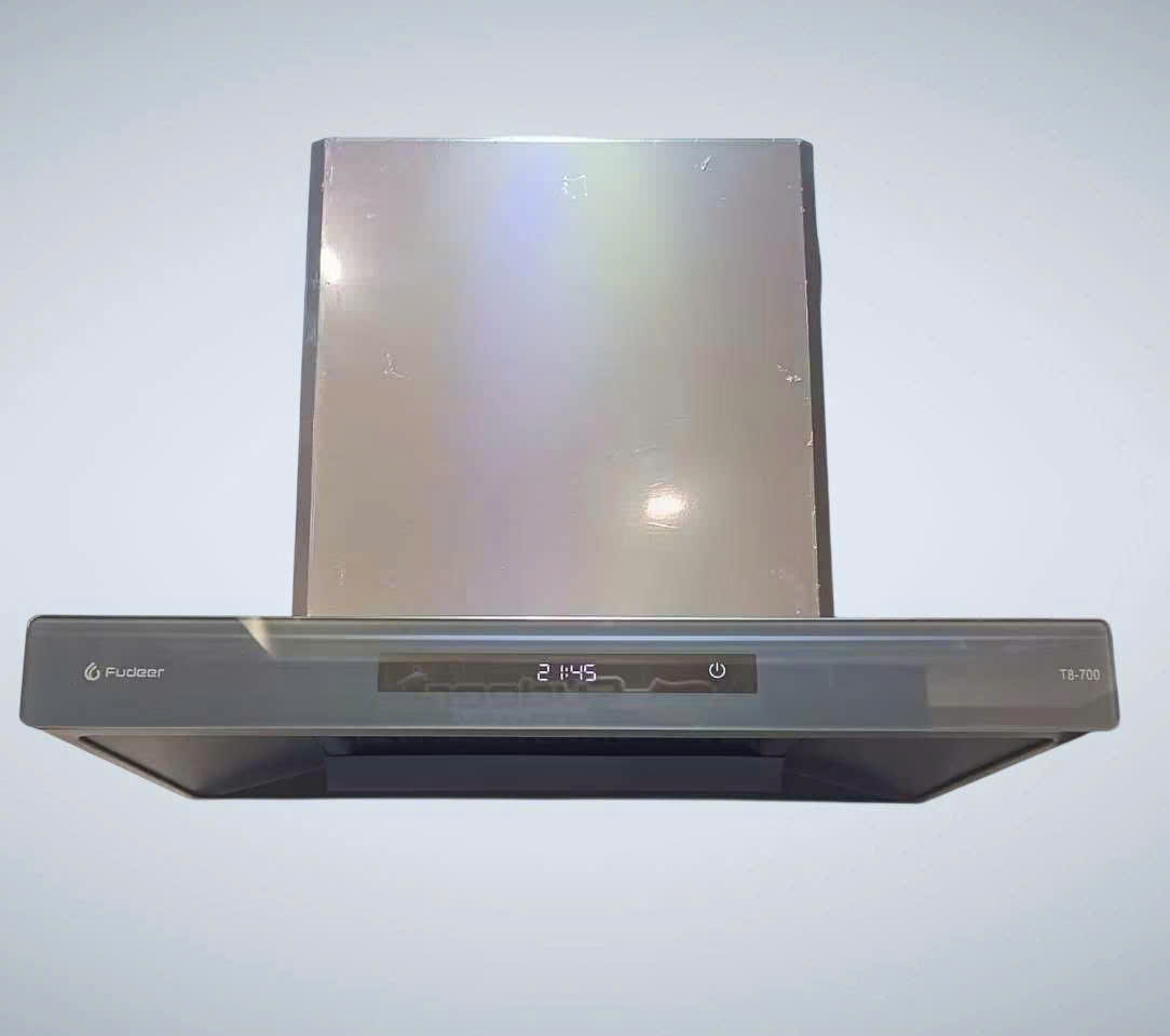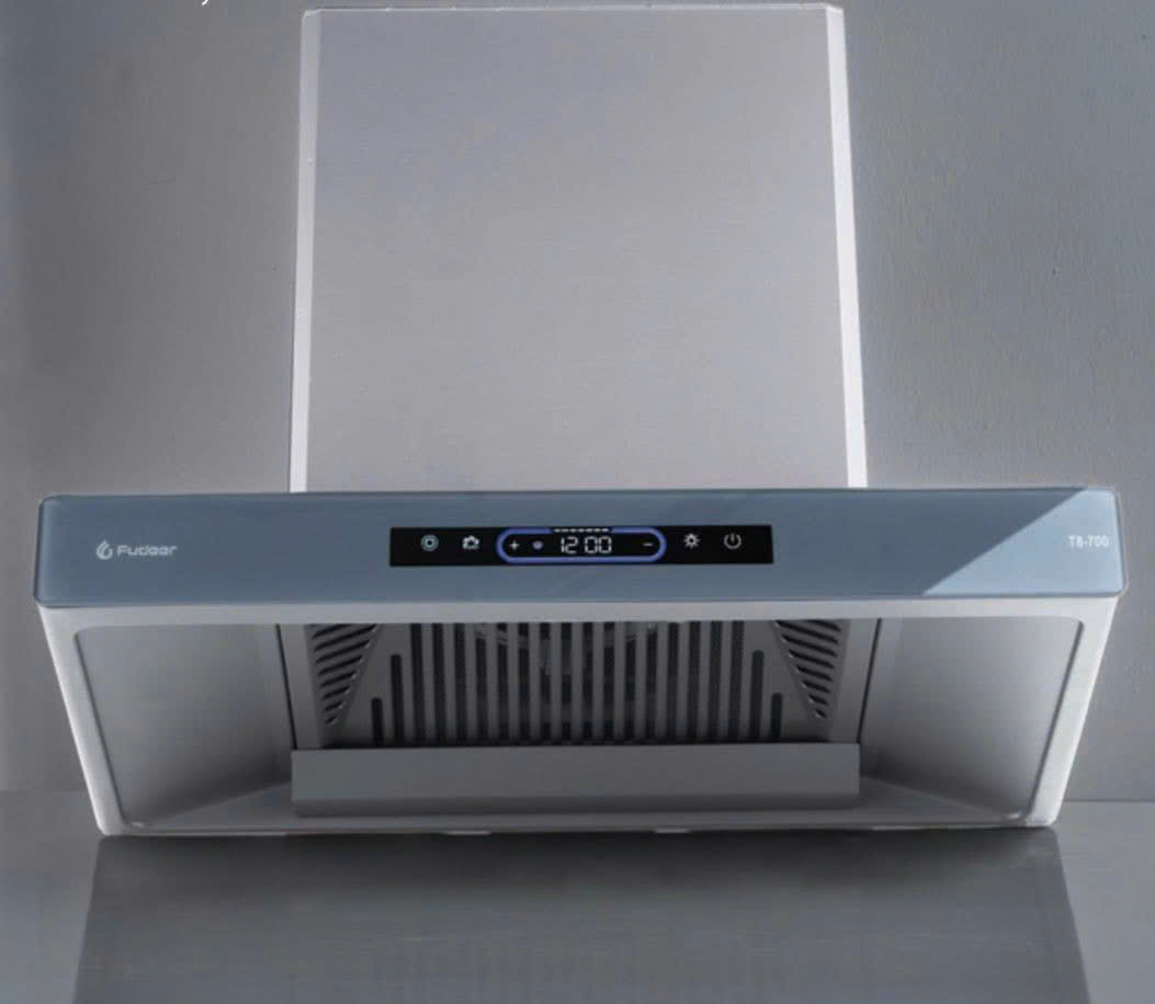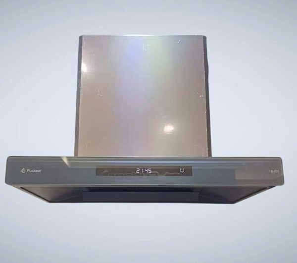 Máy hút mùi kiểu chữ T, thân máy bằng thép trắng sơn chống bám dầu mỡ cao cấp.
